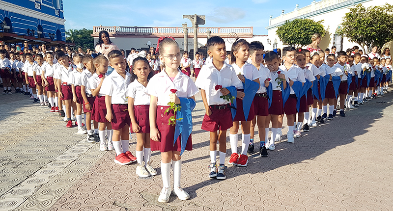 Samantha, René, Layra… los más de cinco mil 200 alumnos de primer grado en Las Tunas vivieron, este viernes, una jornada especial al recibir la pañoleta azul que les identifica como miembros de la Organización de Pioneros José Martí (OPJM).
