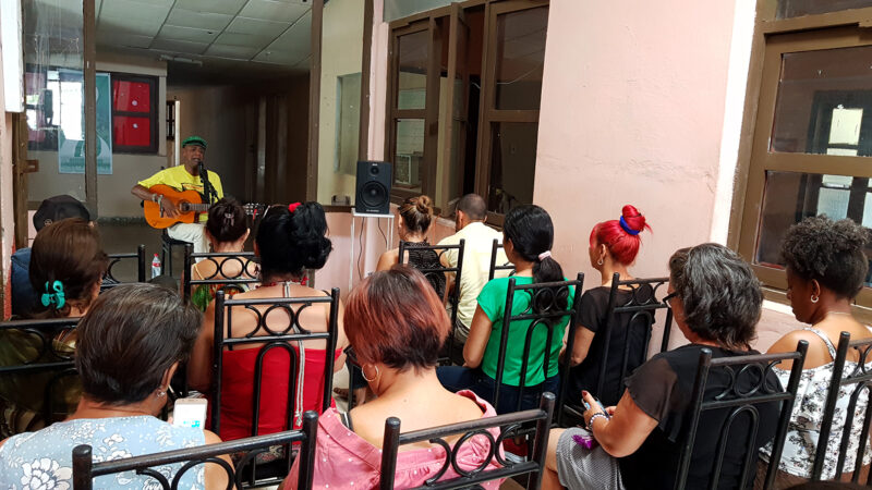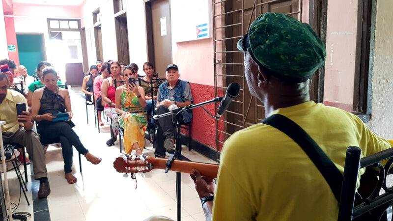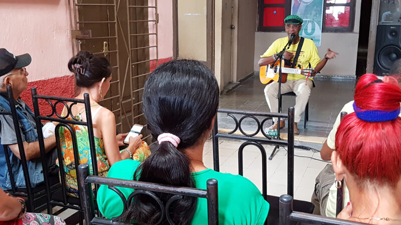 Por cerca de una hora el cantautor deleitó a los presentes con sus canciones entre los que se encontraba el guitarrista concertista Félix Ramos.