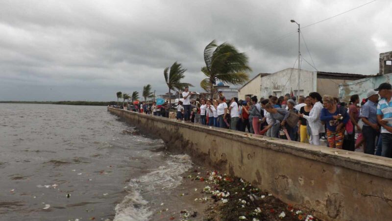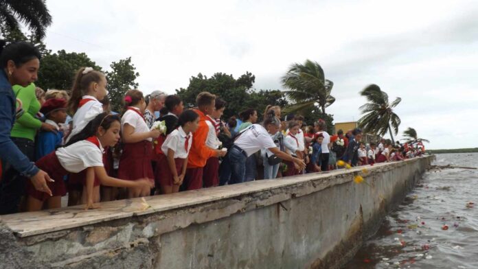 Una ofrenda floral, portada por jóvenes soldados, fue lo primero que acogieron las olas, luego de manos comprometidas con la historia salieron rosas, jazmines, buganvillas, margaritas… en ese hermoso acto de recordación al Héroe de Yaguajay.