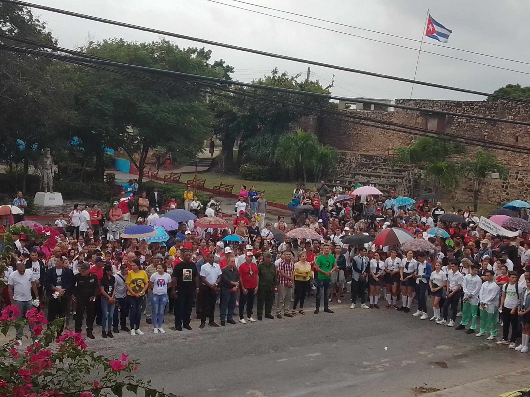 Estudiantes de todos los niveles educativos, combatientes y trabajadores, junto a Walter Simón Noris, Primer Secretario del Partido en Las Tunas, Eduardo Walter Cuelí, gobernador en funciones y las autoridades locales llegaron hasta el sitio, en una mañana de multitud agradecida a la historia, a sus héroes.