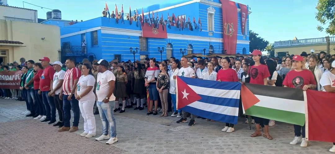 La cita, impulsada por la Unión de Jóvenes Comunistas (UJC) y presidida por las máximas autoridades de la provincia, transformó el sitio en un hervidero de consignas y banderas, donde se alzaron voces para exigir el cese inmediato de las agresiones en la Franja de Gaza.