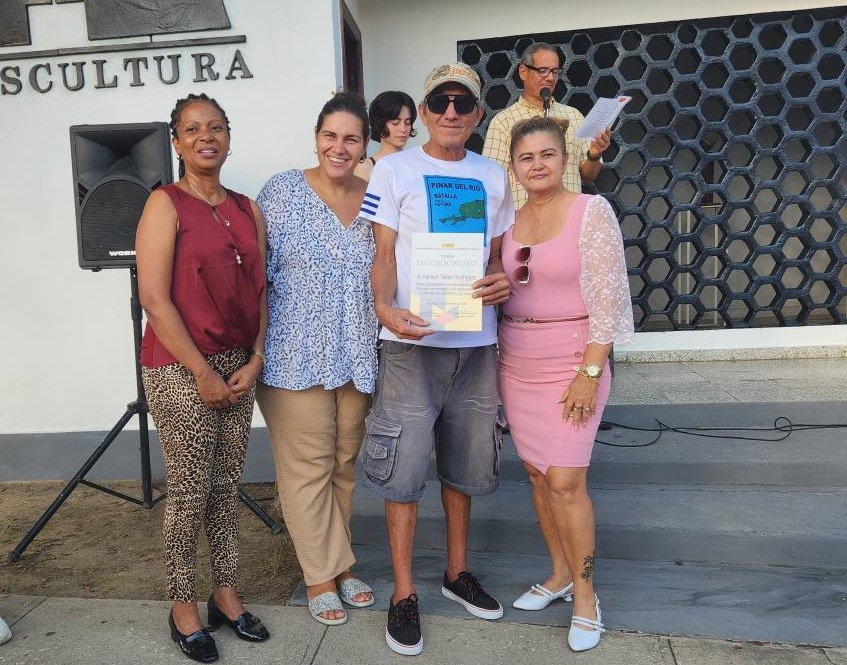 Durante su intervención, el artista visual Nober Olano Escobar, presidente de Codema en Las Tunas, rindió homenaje a las tres figuras fundacionales del movimiento escultórico en la provincia a finales de los años 70 e inicios de los 80:
