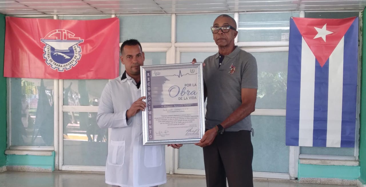 Durante el acto, dedicado a la jornada del Trabajador de la Salud que hasta el venidero 15 de enero se desarrolla en el país, se hizo entrega del reconocimiento Por la Obra de la vida a Reinaldo Benjamín Infante, por el empeño y consagración a la Electromedicina cubana, con 46 años de trabajo.