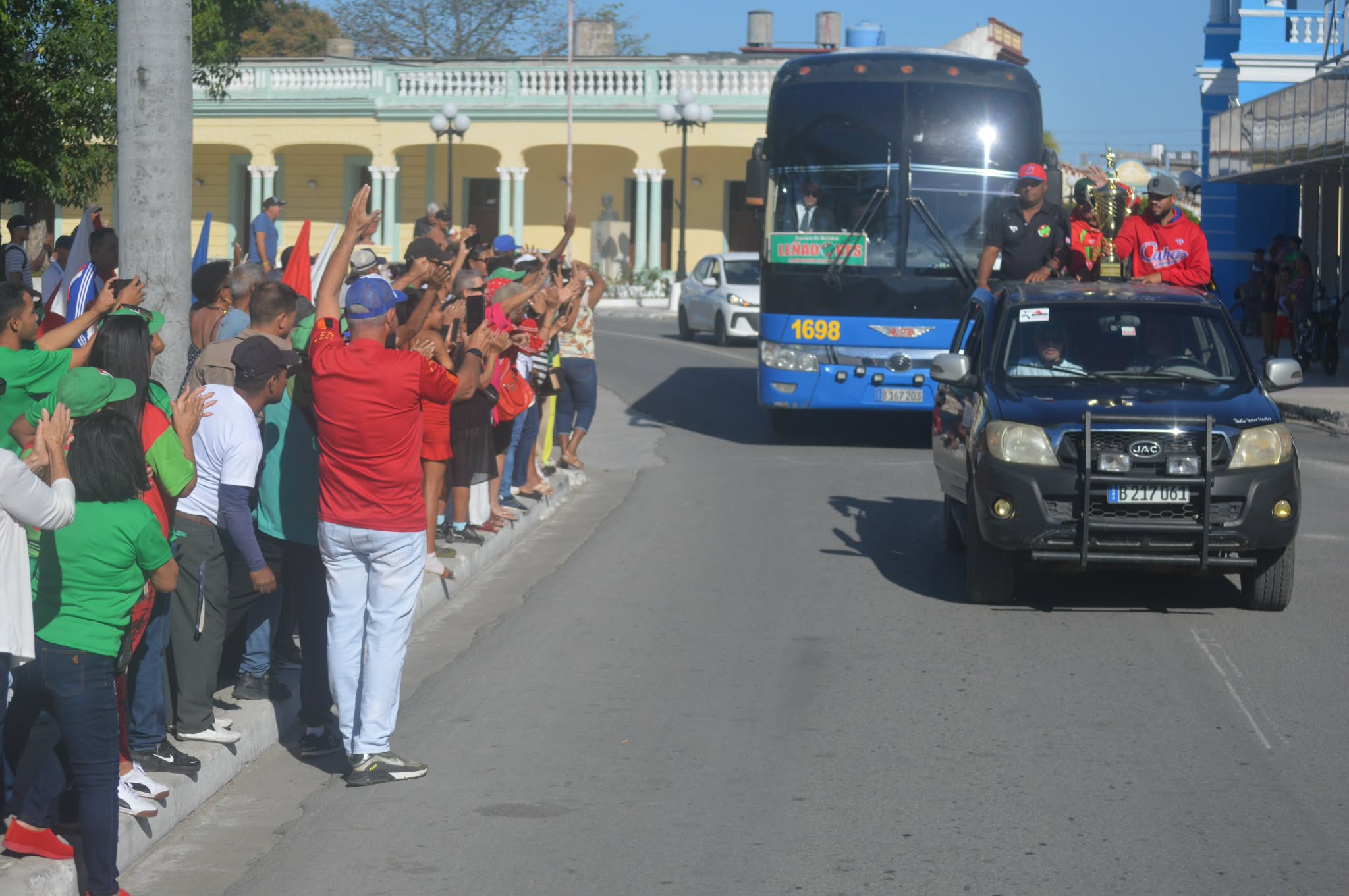La caravana verdirroja recorrió las principales arterias del municipio cabecera, desde El Cornito hasta la Plaza, mostrando el trofeo de subcampeones y recibiendo el saludo de los habitantes que se congregaron para aplaudirlos.