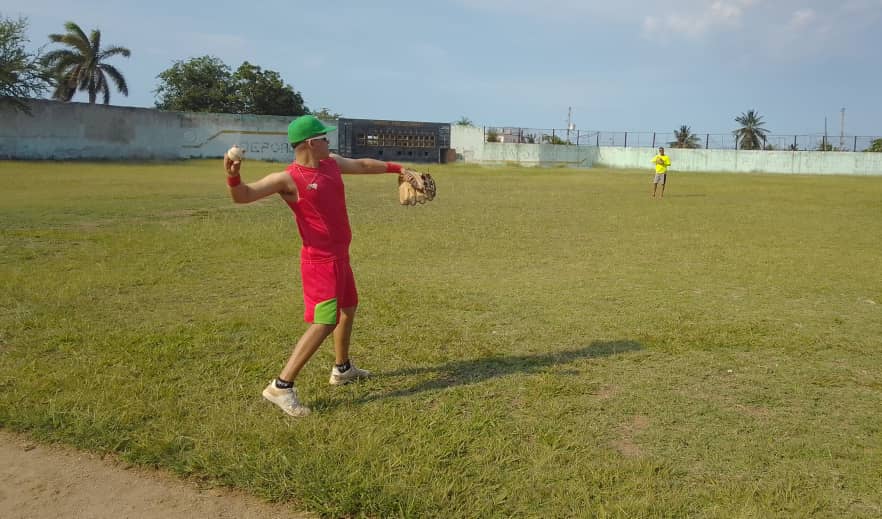 «Comienzo las primeras prácticas, vinculadas al fortalecimiento de los músculos», confirmó mientras calentaba el brazo junto al pelotero local Anier Gutiérrez Pérez.